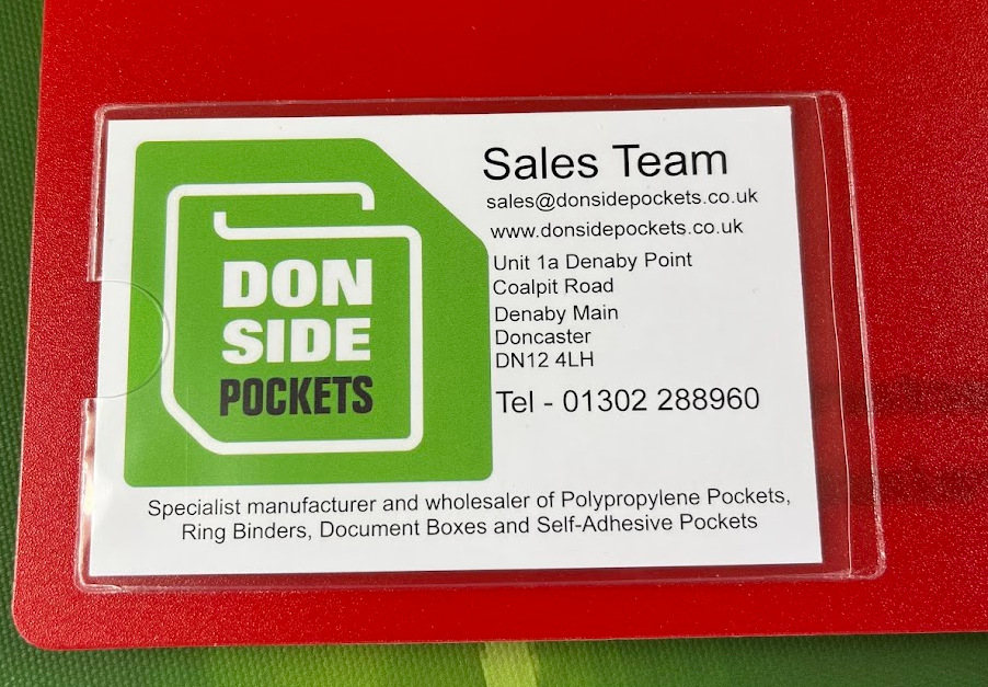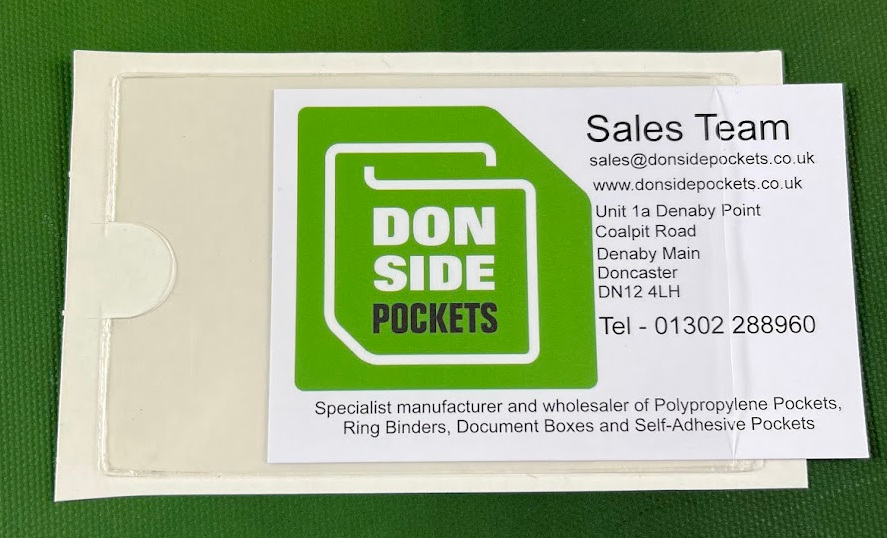 Self-adhesive clear polyprop pockets for any credit card sized item such as standard Business cards, Parking permits, Fuel Cards, Airport pass etc.