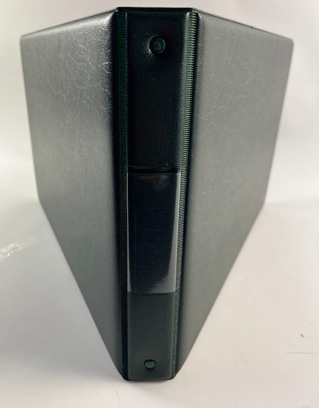 The binder lays flat when open and there is a small pocket for a name card on the spine.