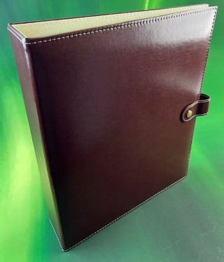 Our leather binder produced for the genealogy market is designed to hold extra-long landscape pockets specifically for marriage and birth certificates.